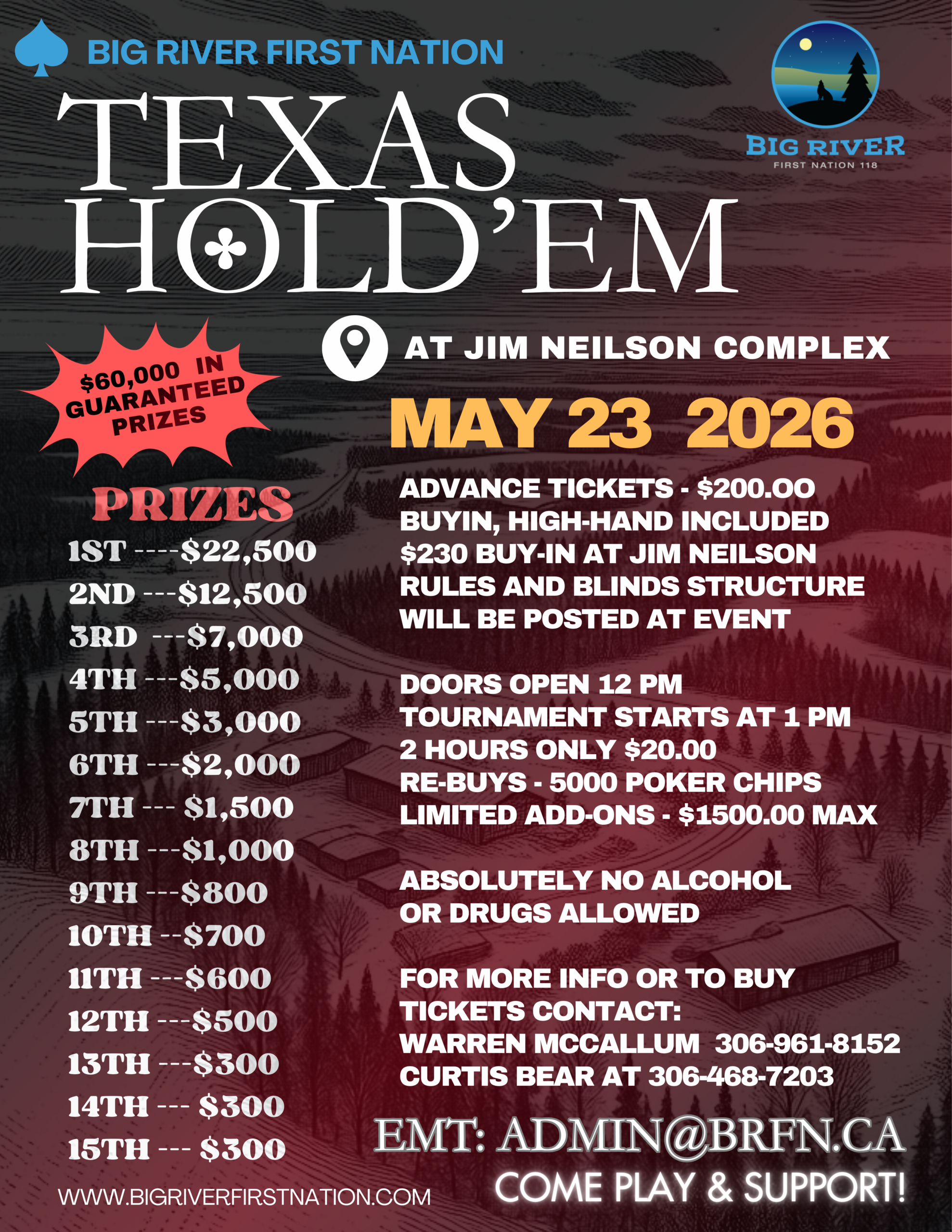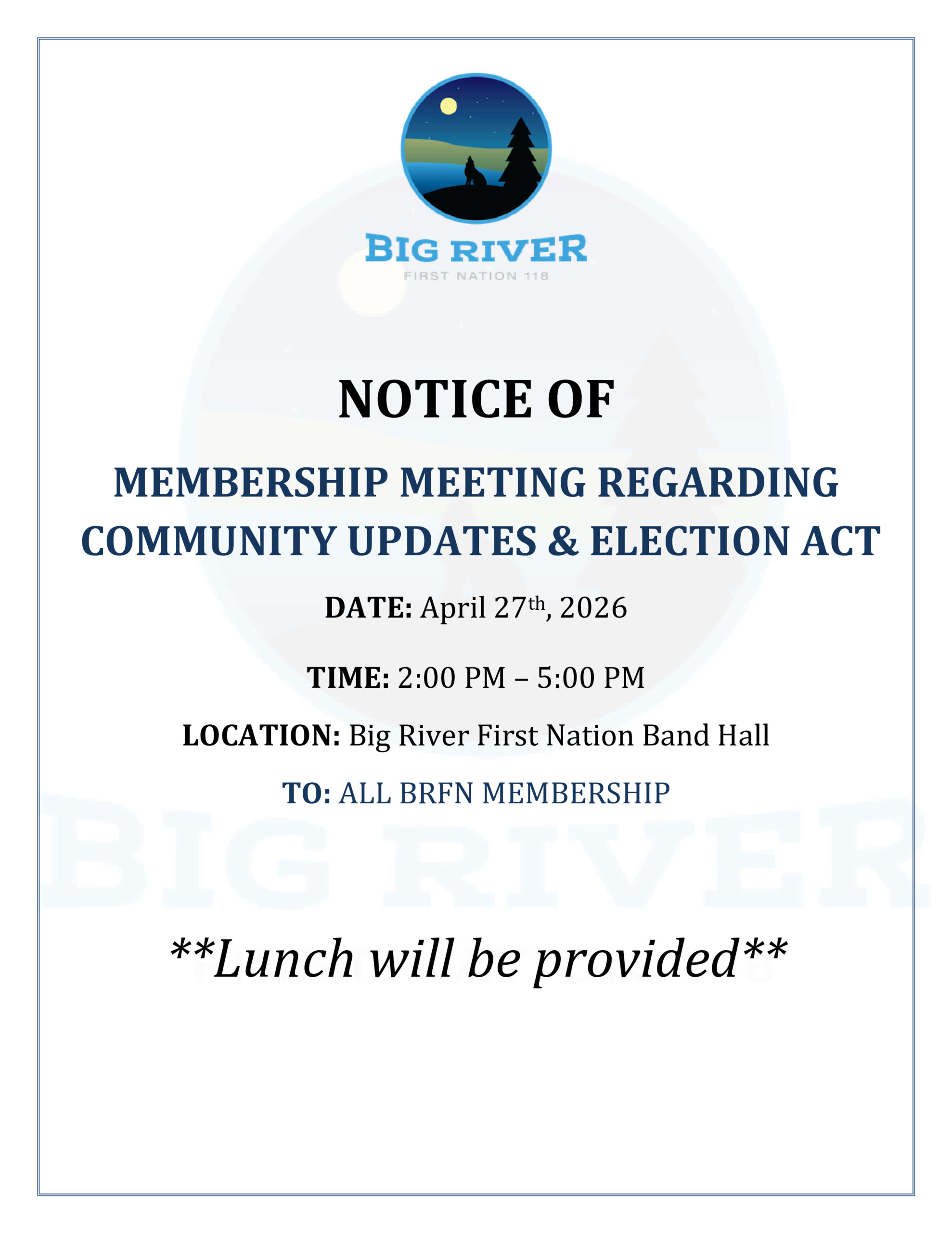 Feel free to reach out to Big River First Nation Band Administration.