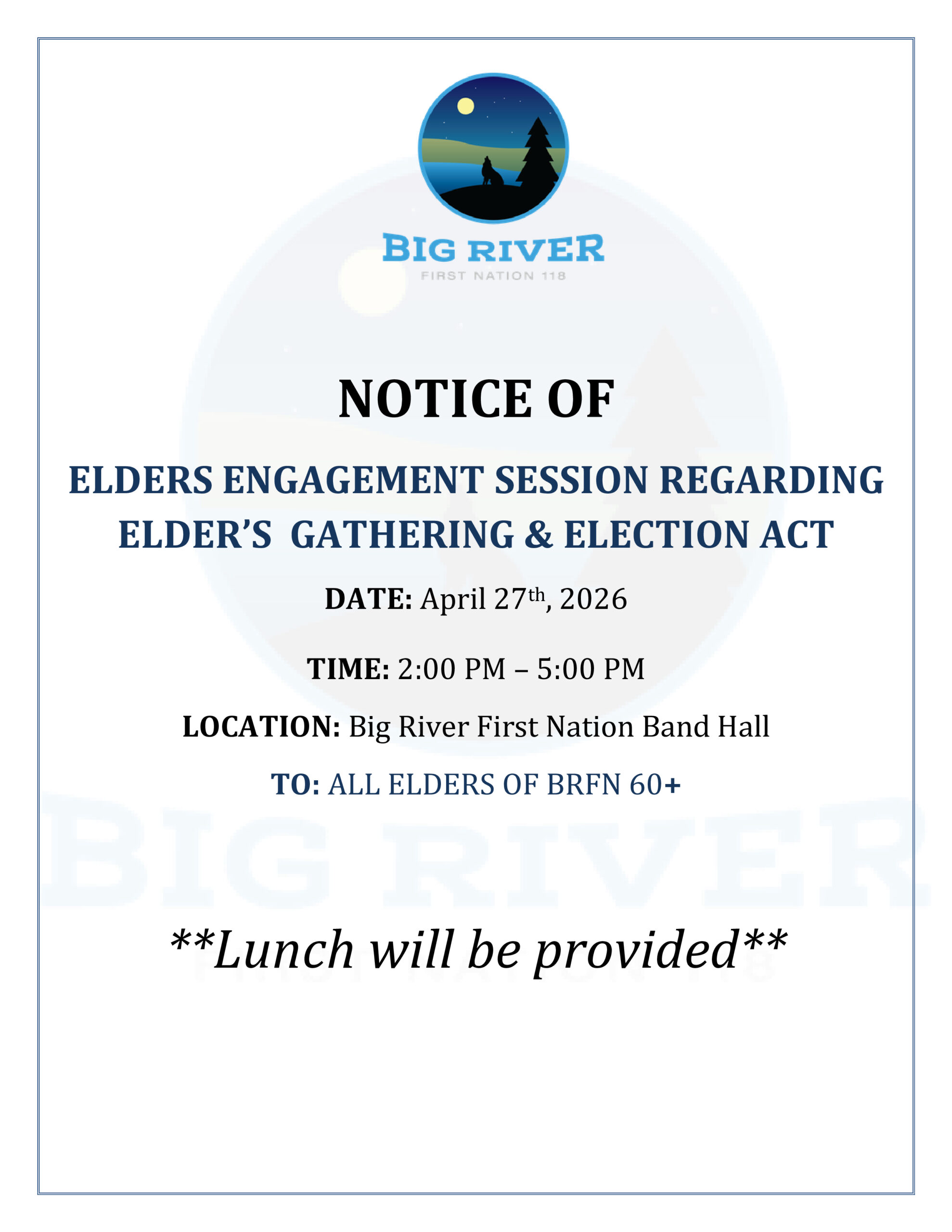 Through investing as a community in life-long learning and sharing our knowledge, Big River First Nation will be a sustainable community that is healthy, Safe, and Vibrant, rooted in the values of our Culture and Land.